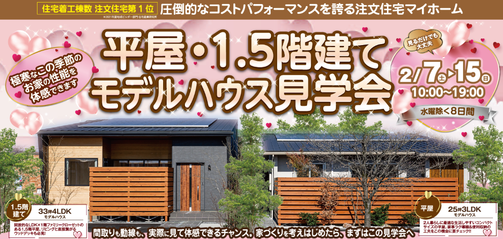 2026年2月7日(土)~15日(日) 平屋・1.5階建てモデルハウス見学会
