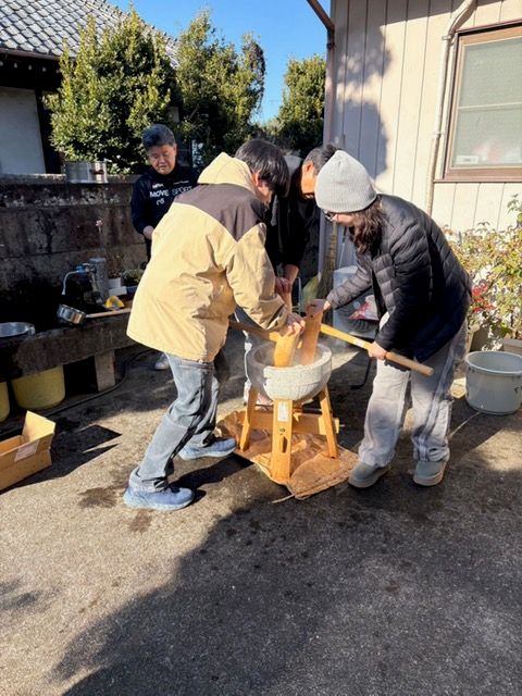 子供から大人まで交代で杵を振るいました。つきたてのお餅の味は格別で、準備の苦労も吹き飛ぶ美味しさでした。