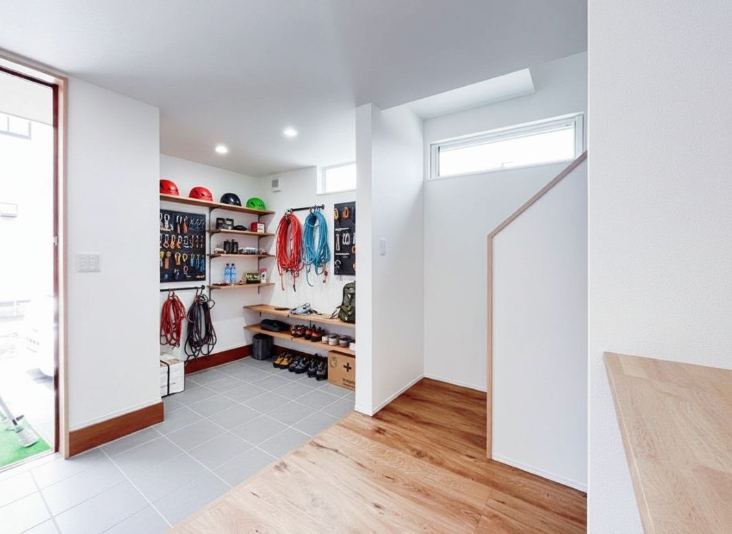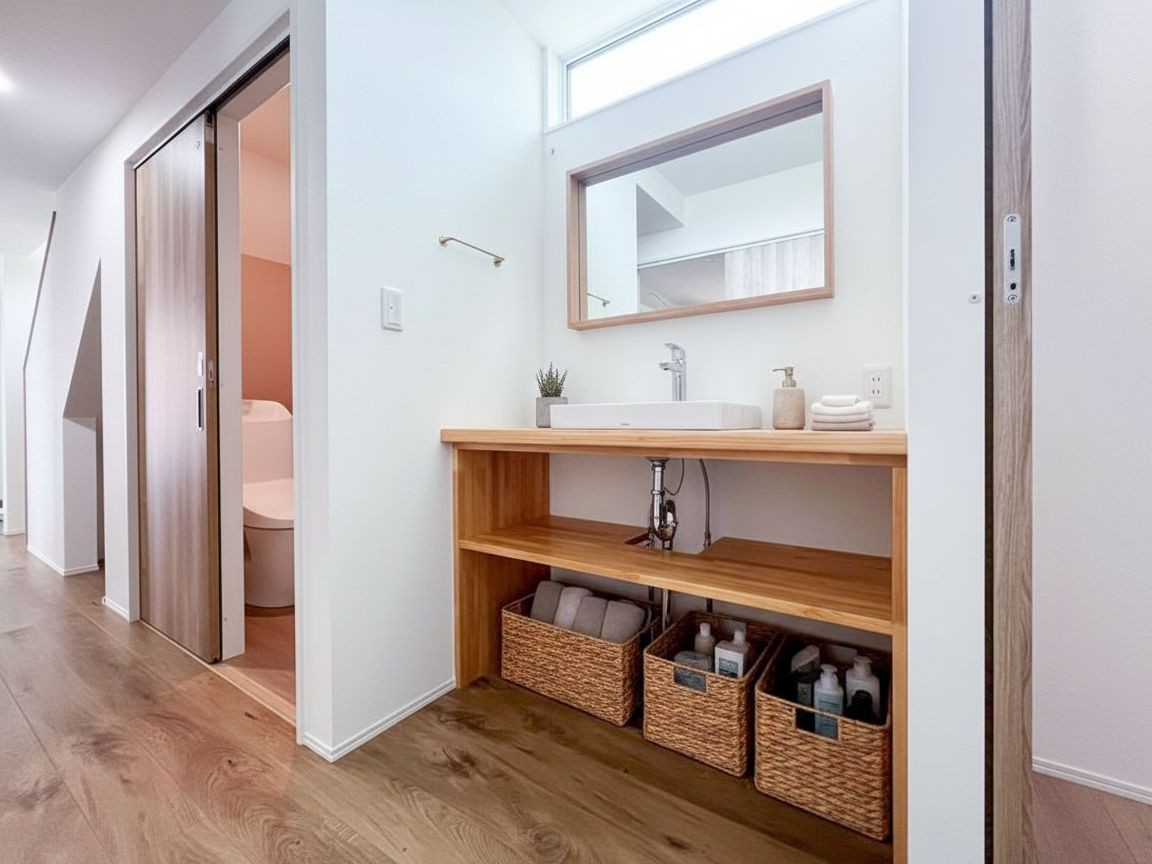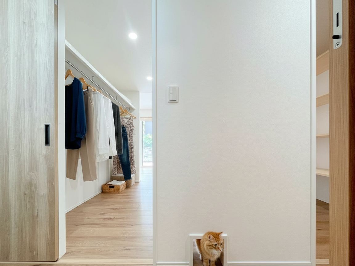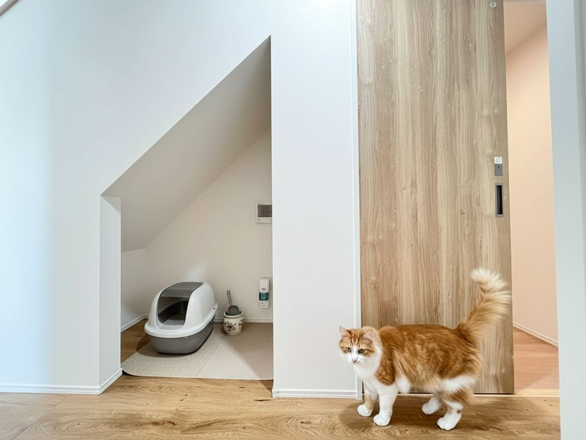また、階段下のデッドスペースを猫ちゃんのおトイレスペースに(換気扇も設置し匂い対策も◎)