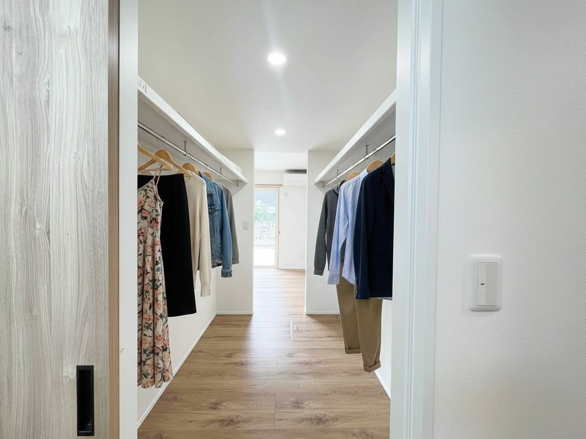 玄関からまっすぐ行けば水周り、パントリー、ウォークスルークローゼット