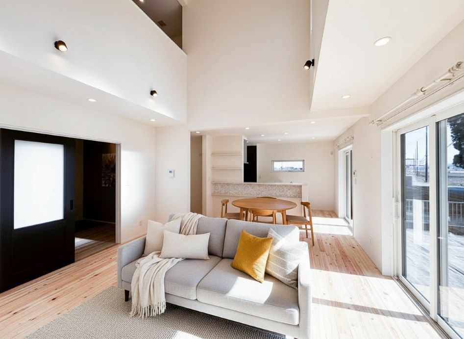 家族が一番長く過ごすリビングに吹き抜けがあることで開放的な空間になり