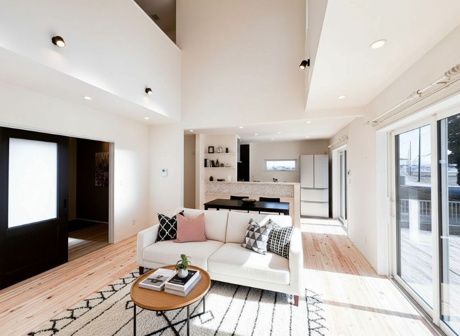 家族が一番長く過ごすリビングに吹き抜けがあることで開放的な空間になり