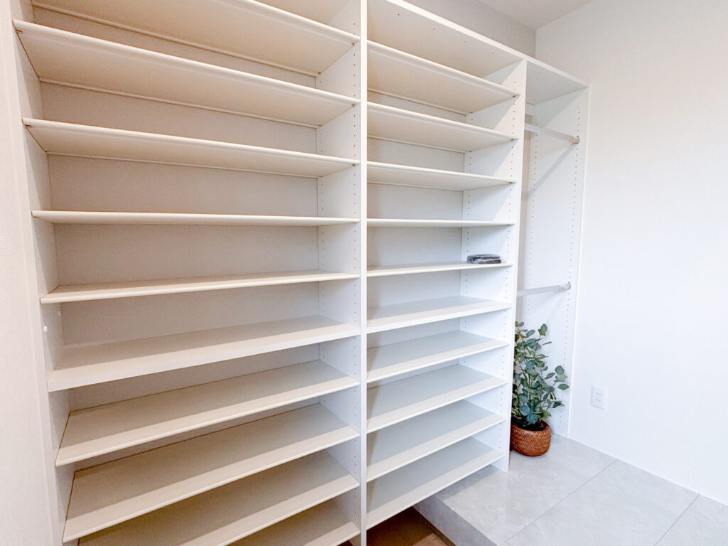 シューズクロークも高さを変えられるのでブーツなど高さに合わせて収納できます。