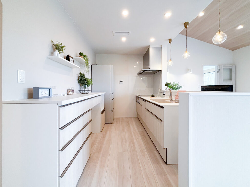 ゴミ箱置き場もしっかり確保されておりキッチン全体の印象がすっきり整いすてきですね‼