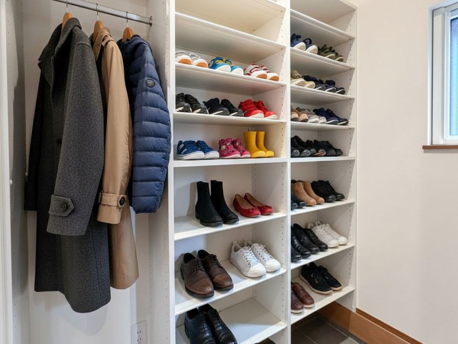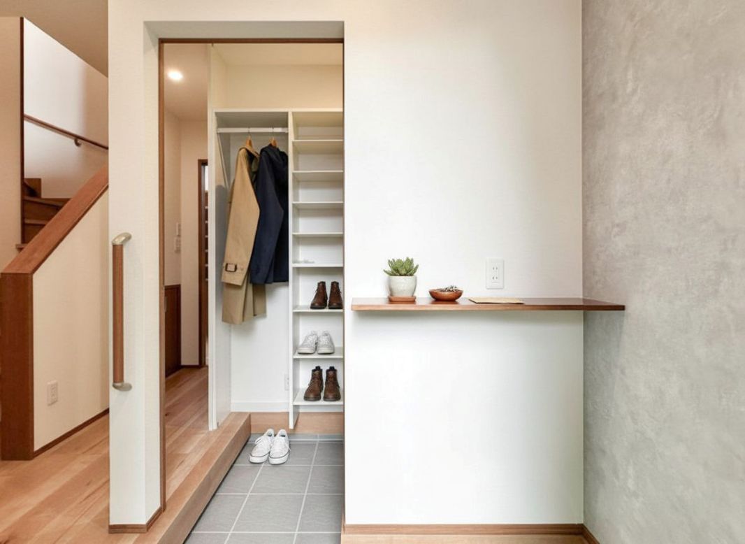 玄関まわりを整理整頓しやすく、家の中に持ち込みたくない荷物も保管可能。